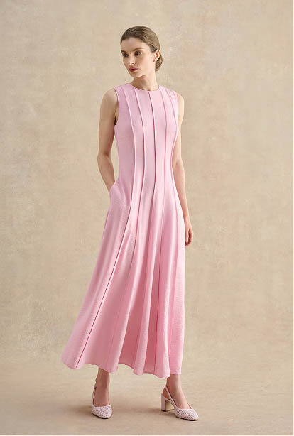 Alluring aqua or powder pink, shades are characterful and considered with seasonality. This is occasion dressing, with romantic appeal.