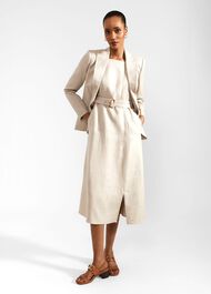 The perfect summer blazer. In a cool linen twill and on-trend neutral shade, this contemporary-cut jacket will layer over any warm weather outfit.