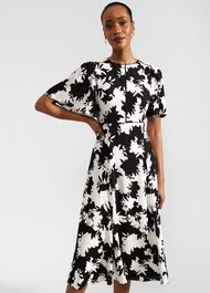 An elegant take on the classic tea dress silhouette, our Alva Dress is rendered in a chic monochrome floral print making it perfect for weddings, races, summer parties and more.