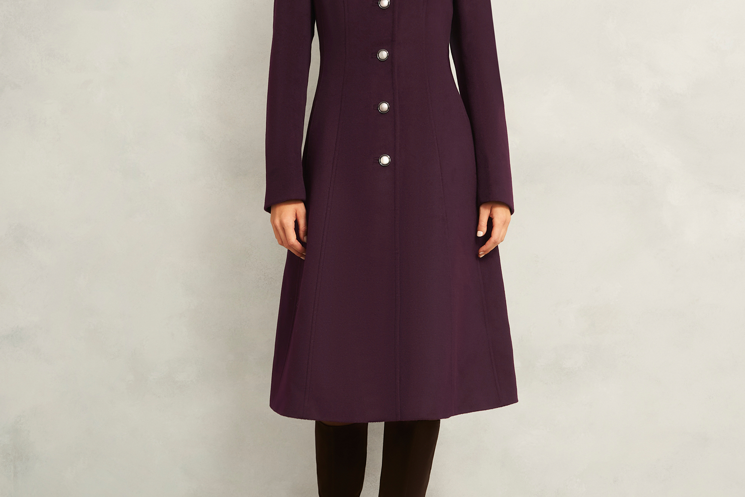 Imbued with elegance, the Iona wool coat has been artfully designed to define the waist before falling into a sculptural skirt.