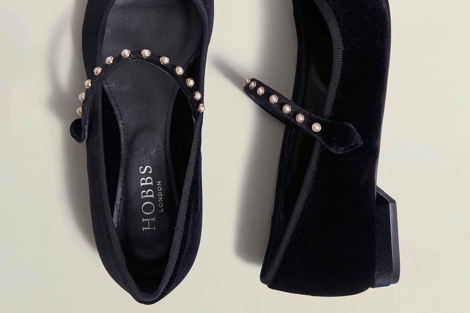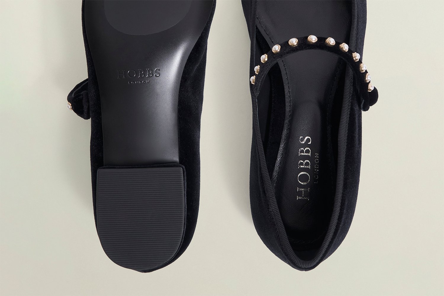 In luxurious velvet with pearl accents, the Juliana ballet flat lends a luxurious finish to seasonal outfits. Day or night.