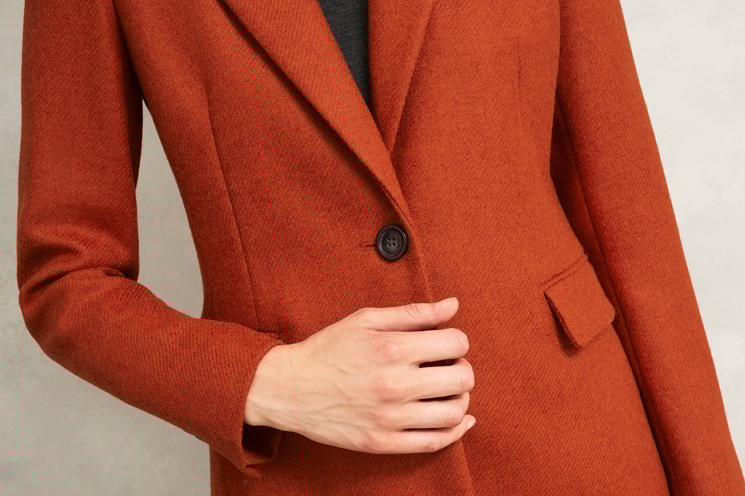 Splashed in a contemporary orange shade, the Jess jacket lends radiance to all your autumn-winter looks.