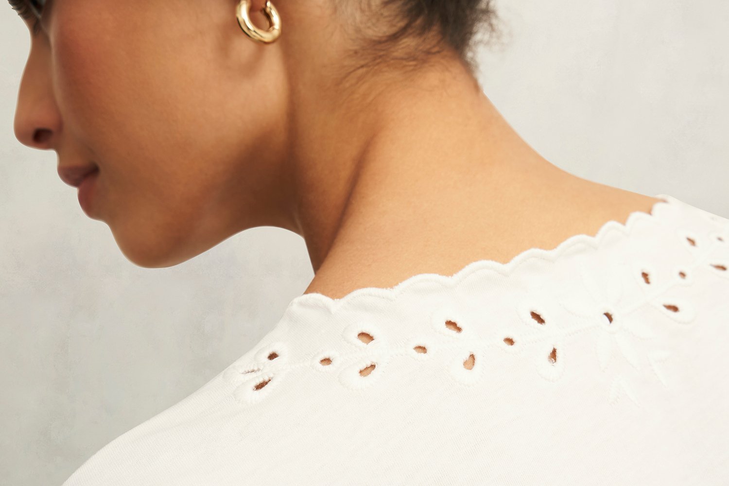 Adorned with delicate cutwork, the Kristen top lends itself to your everyday edit in cooling cotton.
