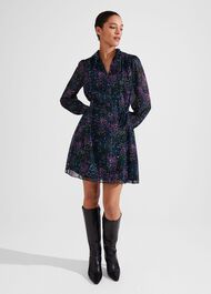 Journey into flattering work-to-weekend looks with the cosmic-inspired, spot print Lettie dress.