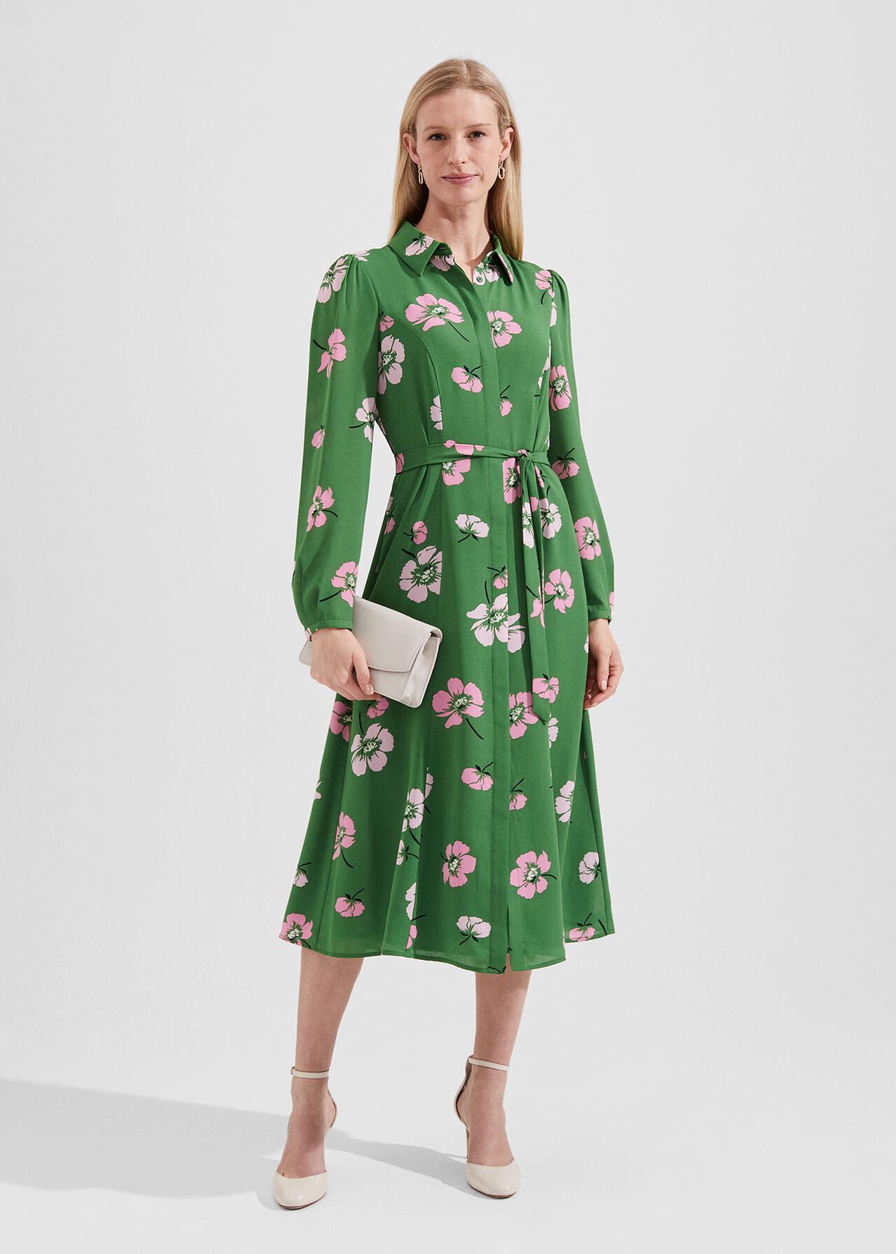 An elegant poppy print and a flattering fit are what make the Savannah shirt dress the perfect outfit solution for the office and weekend settings.