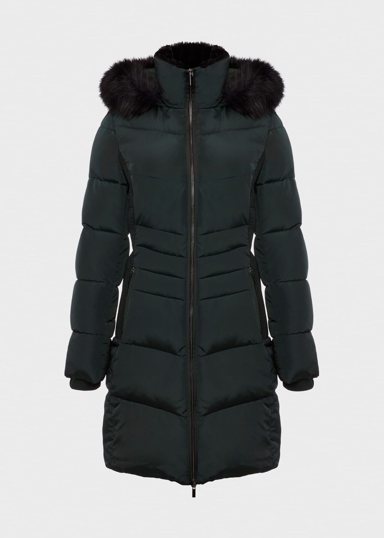 • Faux fur lined collar and hood