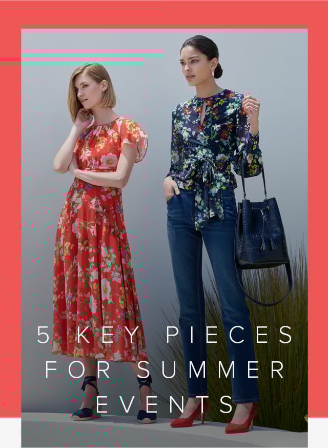 Whether it's a midi length or fit and flare shape, always choose a figure-flattering occasion dress that makes you feel comfortable whether you'll be standing, sitting or dancing. Styles you can easily dress up or down will offer added flexibility all summer long. Think floral dresses that look equally chic with a blazer or denim jacket.