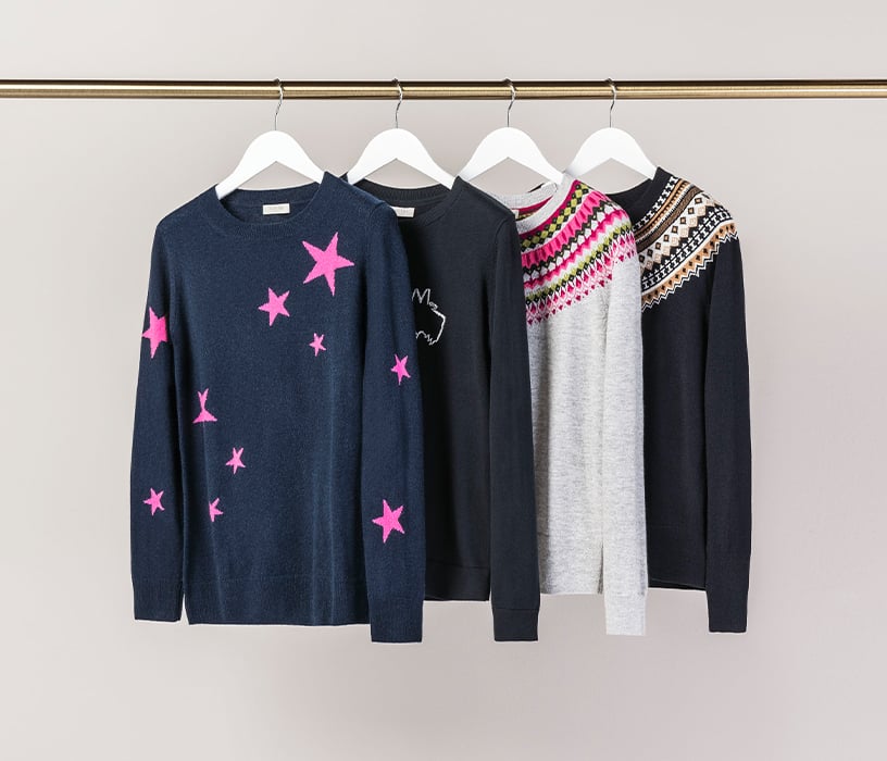From bead embellishments to classic Fair Isle, inject some chic seasonal cheer into your winter wardrobe with our luxe festive knits